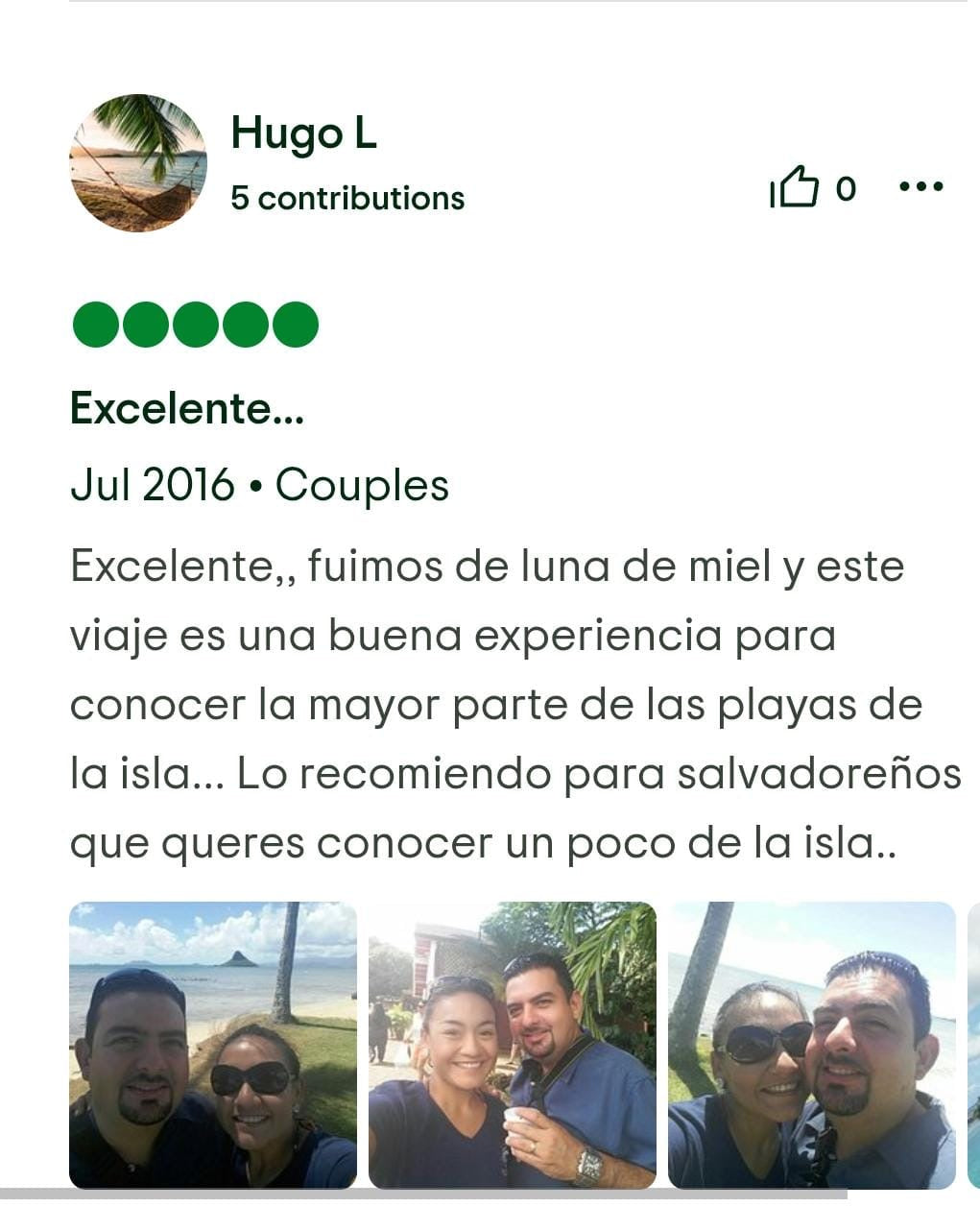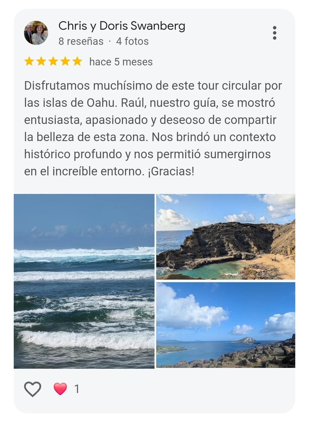 Gracias por considerarnos para llevarte por Oʻahu. Somos pequeños y boutique, como una familia, pero nos exigimos altos estándares de calidad y profesionalismo. Puedes llamarme en cualquier momento, estoy aquí para ti.