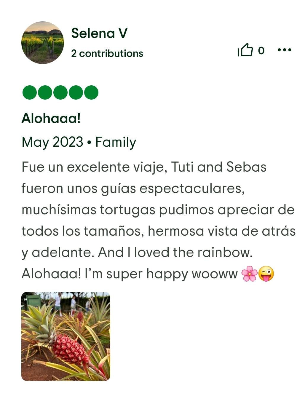 - Aunque no podemos garantizar ver tortugas, la probabilidad de encontrarlas es muy alta.
